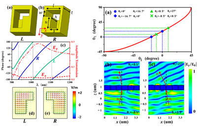阅读次数: 发布时间:2021-04-30相位是电磁波的一个基本特性。传统的光学元件通常利用元件的几何轮廓对光的相位进行调控,其尺寸较为庞大,不利于光学系统小型化和集成化。近年来,由准二维“超原子”构成的超表面受到了极大关注。通过调控几何相位、共振相位或传播相位,超表面可以产生覆盖360度范围的相位非连续性,为操控光的传播提供了极大的自由度。利用这一特性,通过构造相位梯度超表面,可以实现反常折射、反常反射、光学聚焦、光学成像等许多奇异的光学效应或功能。通常,单层的等离激元超表面,在透射模式下其工作效率较为低下;而选择反射模式,虽效率较高但不便于实际运用(单层的介电超表面损耗较低,但也存在工作条件或信号提取问题)。利用多层的等离激元超表面,可以达到较高的转换效率,但是会带来制备上的困难。